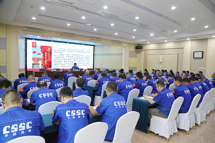 為(wei)推動深(shen)入(ru)貫(guan)徹中(zhong)央八(ba)項規(gui)定精(jing)神學(xue)習(xi)教(jiao)育走深(shen)走實(shi),進一步(bu)鞏(gong)固拓展黨(dang)(dang)紀學(xue)習(xi)教(jiao)育成果,切(qie)實(shi)增強黨(dang)(dang)員(yuan)(yuan)干部(bu)的(de)紀律意識和(he)規(gui)矩意識,持(chi)續深(shen)化(hua)作風建設(she),6月19日,中(zhong)船(chuan)集團平陽(yang)重工黨(dang)(dang)委書記、董事長聶秋社以《深(shen)入(ru)貫(guan)徹中(zhong)央八(ba)項規(gui)定精(jing)神,持(chi)續加(jia)強作風建設(she)》為(wei)題講授學(xue)習(xi)教(jiao)育專題黨(dang)(dang)課(ke)。公(gong)司領(ling)導(dao)班子(zi)成員(yuan)(yuan)、中(zhong)層(ceng)及以上領(ling)導(dao)人員(yuan)(yuan)和(he)所在支(zhi)(zhi)部(bu)、聯系(xi)點(dian)支(zhi)(zhi)部(bu)黨(dang)(dang)員(yuan)(yuan)及重點(dian)部(bu)門關鍵領(ling)域風險崗位黨(dang)(dang)員(yuan)(yuan)130余人參加(jia)會(hui)議。