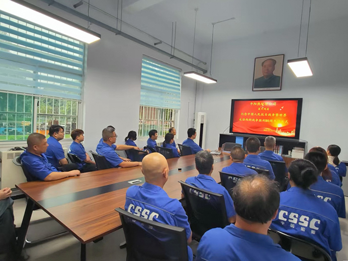 為銘記歷史、緬懷先烈、珍愛和平、開創未來,9月3日,中船集團平陽重工組織廣大黨員領導干部,在職工文體活動中心集中收看紀念中國人民抗日戰爭暨世界反法西斯戰爭勝利80周年閱兵式直播。公司領導、專職董事、集團公司高級專家、總助級領導、中層領導人員、高層次人才、分工會主席、團支部書記及業務骨干共600人參與活動。